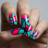 Try matte black with white triangles for a sleek look, or a nude base with colorful neon shapes for playful vibes. Metallic lines add an upscale edge, and using tape makes creating clean designs super easy!